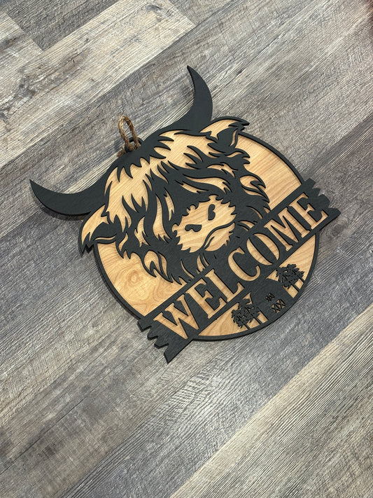Highland Cow Door Welcome Sign